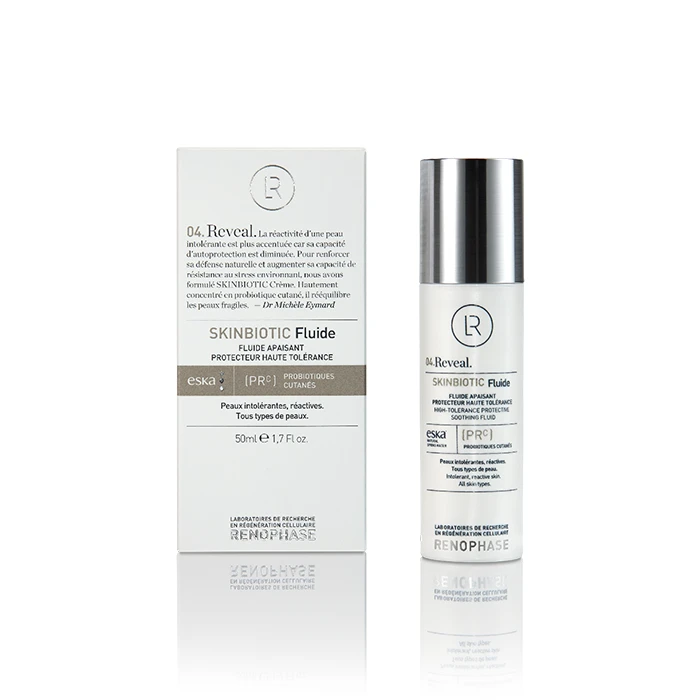 Renophase Skinbiotic Fluide ingrediënten: Water (aqua), caprilic/capric triglycerides, urea, palmitoyl silk amino acids, hydrolyzed glycosaminoglycans, candelilla/jojoba/rice bran polyglyceryl-3 esters, cetearyl ethylhexanoate, glyceryl stearate, isopropyl myristate, saccharide isomerate, lactis proteinum (milk protein), sodium stearoyl lactylate, bifida ferment lysate, phaeodactylum tricornutum extract, lactose, caprylic/capric triglyceride, phenoxyethanol, hydroxyapatite, calcium carbonate, xanthan gum, cetyl alcohol, cetearyl alcohol, ethylhexylglycerin, phenethyl alcohol, lactic acid, sodium hydroxide, stearyl alcohol, citric acid, sodium citrate, myristyl alcohol, tocopherol, lauryl alcohol, parfum.